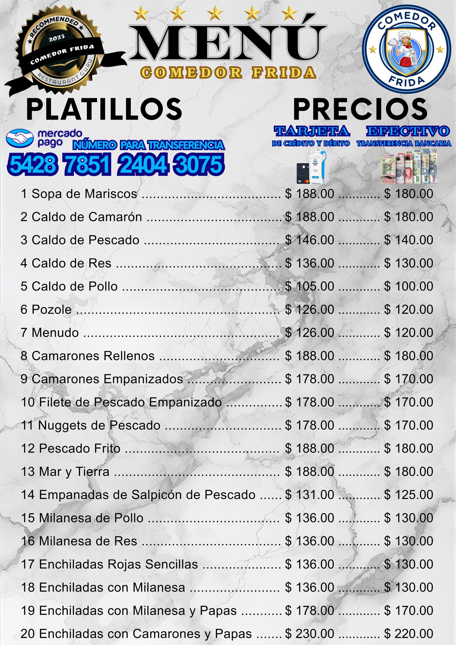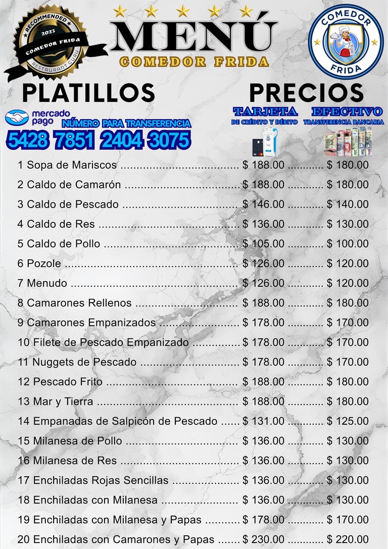 ”Excelente comida y servicio! Recomiendo mucho la sopa de mariscos, igual que las enchiladas con milanesa. Pero la verdad es que todo está buenísimo!”